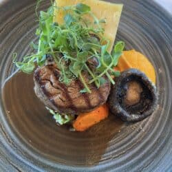 Med portobellosvamp – krydderbagte rodfrugter – gulerodspuré